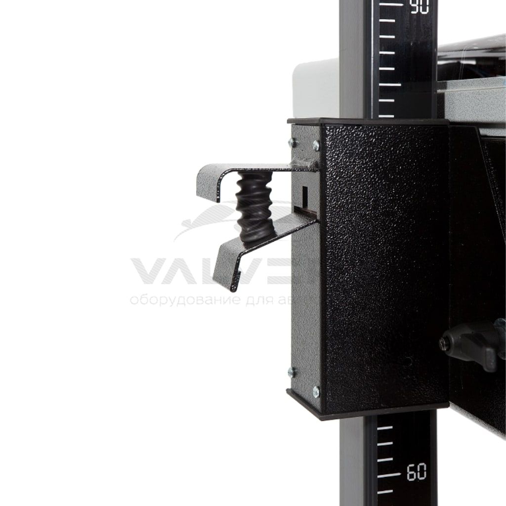 - Позиционирование прибора относительно транспорта осуществляется по зеркальному визиру, зафиксированному в верхней части неподвижной стойки. Регулировка положения визира под рост оператора производится при помощи удобной ручки.